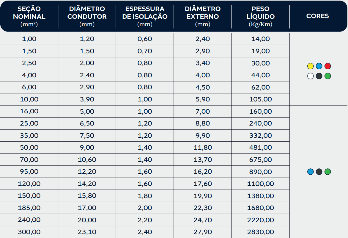 Isolação: PVC tipo BWF (não propaga chamas)