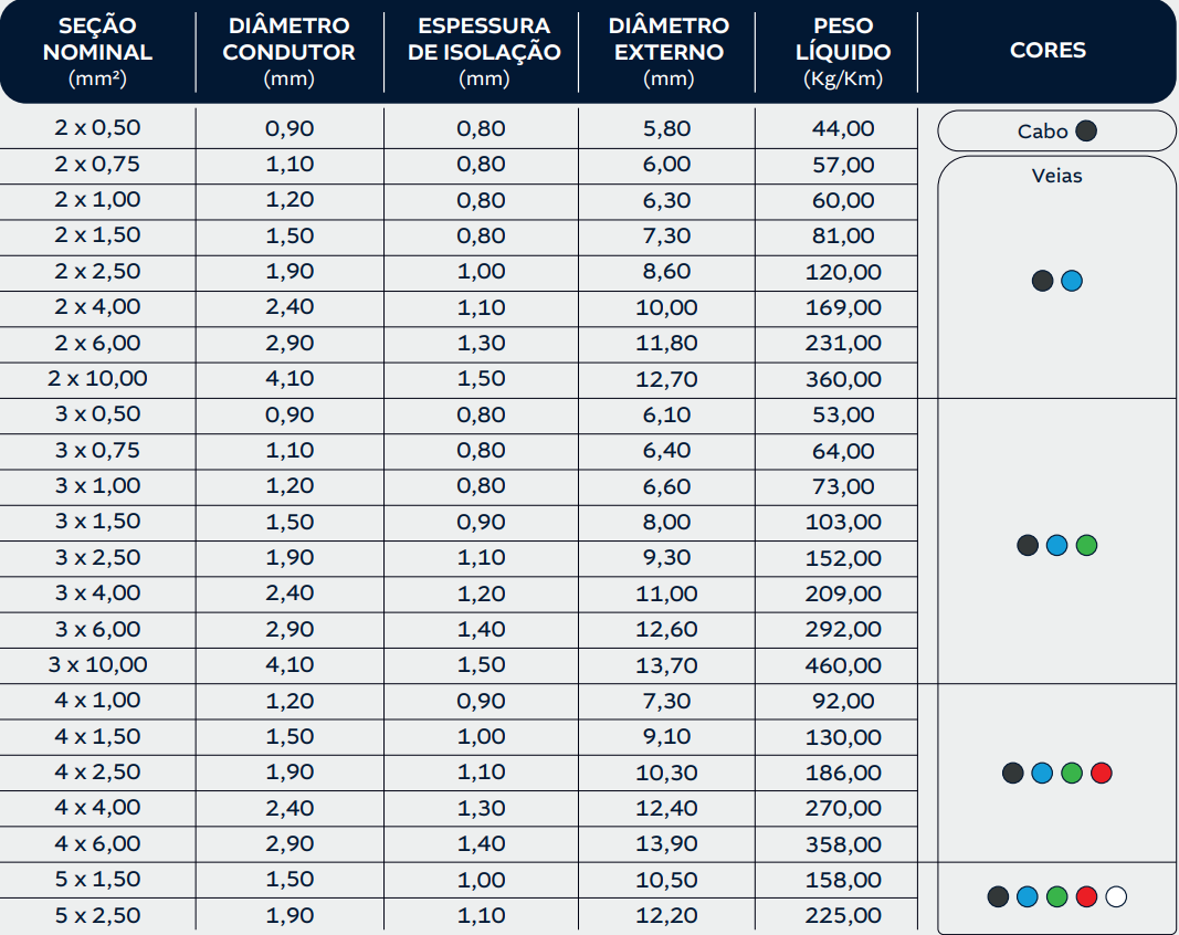 Cores Cabos