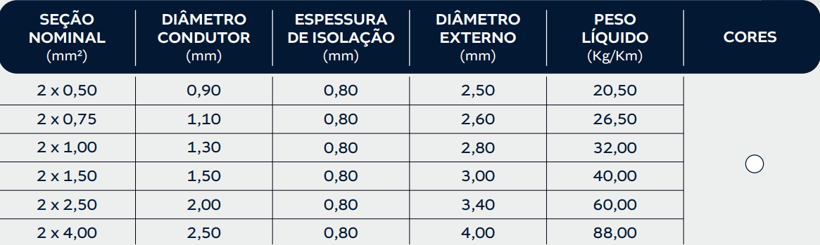 Cabo flexível com cobre eletrolítico nu, têmpera mole.
